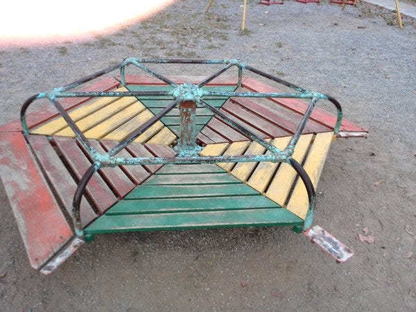 El centro del parque, y quizás su juego estrella, es la ruleta, donde los niños juegan a dar vueltas y pueden empujar desde el exterior o sentarse en el interior. El jolgorio alrededor es notable. Normalmente coinciden niños de edades variadas, y se puede sentir el pavor de algunos padres de niños más pequeños al verlos sentados en semejantes máquinas de centrifugar, propulsados por niños de 9 años gritando fuera de sí.